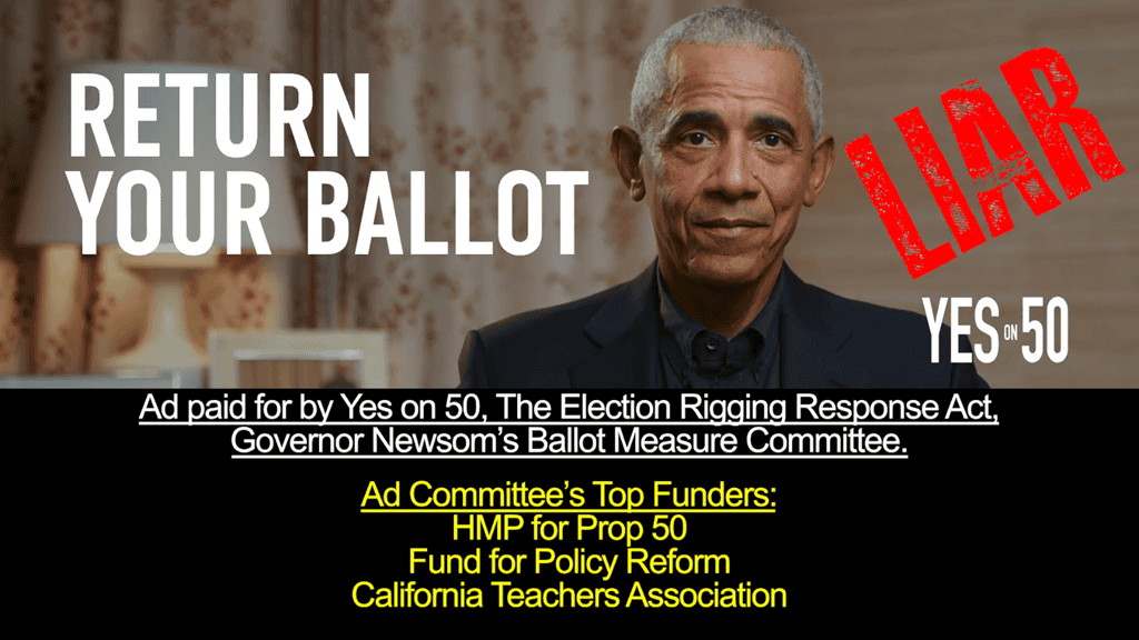 When Barack Obama appears in a polished campaign spot urging Californians to “vote Yes on 50,” it feels like déjà vu. The cadence is the same, the calm authority, the appeal to “save democracy.” Yet beneath that practiced delivery lies the same brand of selective truth-telling that has infected American politics for more than a decade.