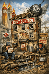 The Policy That Eats Its Own Young. Rent control is sold as compassion. In reality, it’s economic self-harm dressed up as virtue. When politicians freeze rents in a world of unconstrained, relentlessly rising costs, they aren’t “protecting tenants.” They’re detonating the housing stock from the inside. Insurance spikes. Labor costs