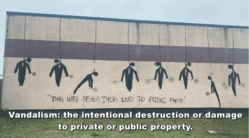 Graffiti is vandalism by definition. It defaces buildings, costs property owners money, and leaves neighborhoods scarred. The First Amendment protects speech, but it does not protect destroying or damaging other people’s property in the name of protest or expression.