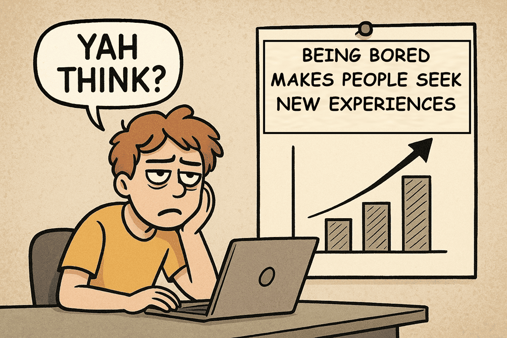 Heather Lench puts it more academically: boredom “motivates people to pursue new experiences,” even at an emotional cost. Translation: yes, your mid-meeting urge to dye your hair green or start an argument on Reddit has a scientific explanation. You’re not impulsive; you’re functionally emotional.